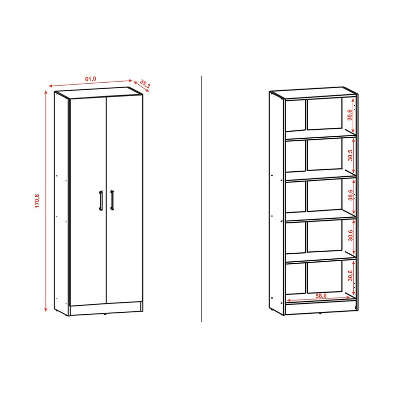 Largeur 61 cm Hauteur 170.6 cm Profondeur 35.3 cm