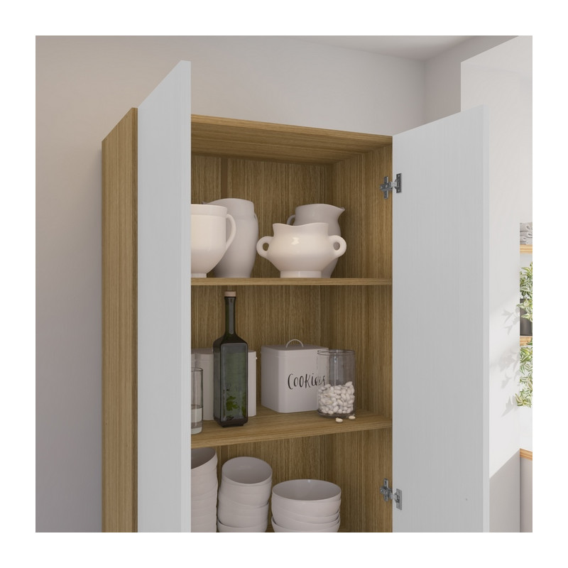 Armoire Multifonctions 2 Portes Largeur 61 cm H 170.6 Coloris Imitation Chêne et Blanc Ecru