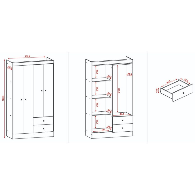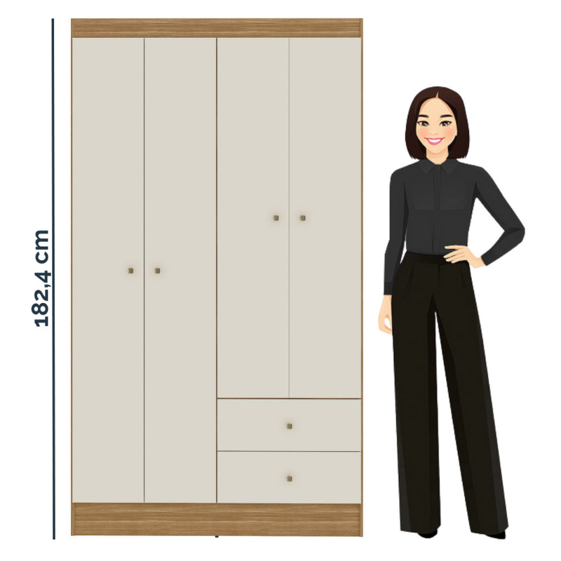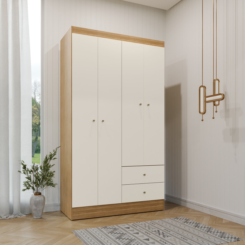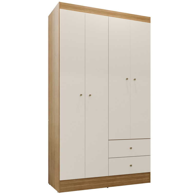Armoire Penderie 4 Portes 2 Tiroirs 5 Niches Chêne Blanc Ecru Versa L 102.4 H 182.4 P 46.3 cm