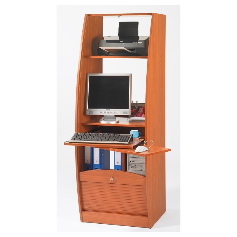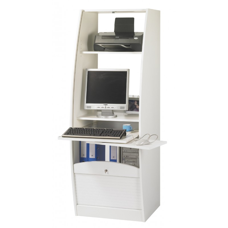 Armoire informatique Galbée Largeur 60 cm. Blanc, Hêtre ou Merisier. Fermeture à clé. Largeur 60 cm Hauteur 171,5 cm Profondeur 59,3 cm. Nombreux rangements. 5 Niches. Fabriquée en France. Eco-conçue. Livraison sous 7 jours offerte.