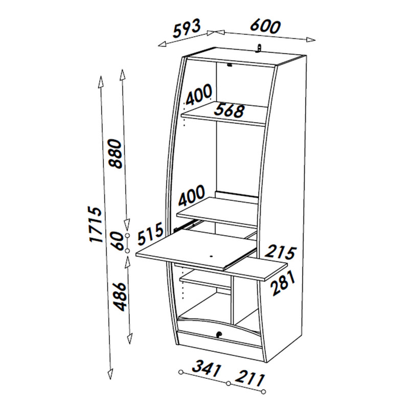 Largeur 60 cm Hauteur 171,5 cm Profondeur 59,3 cm