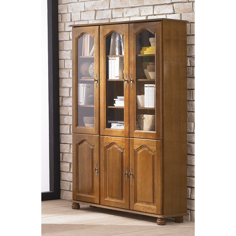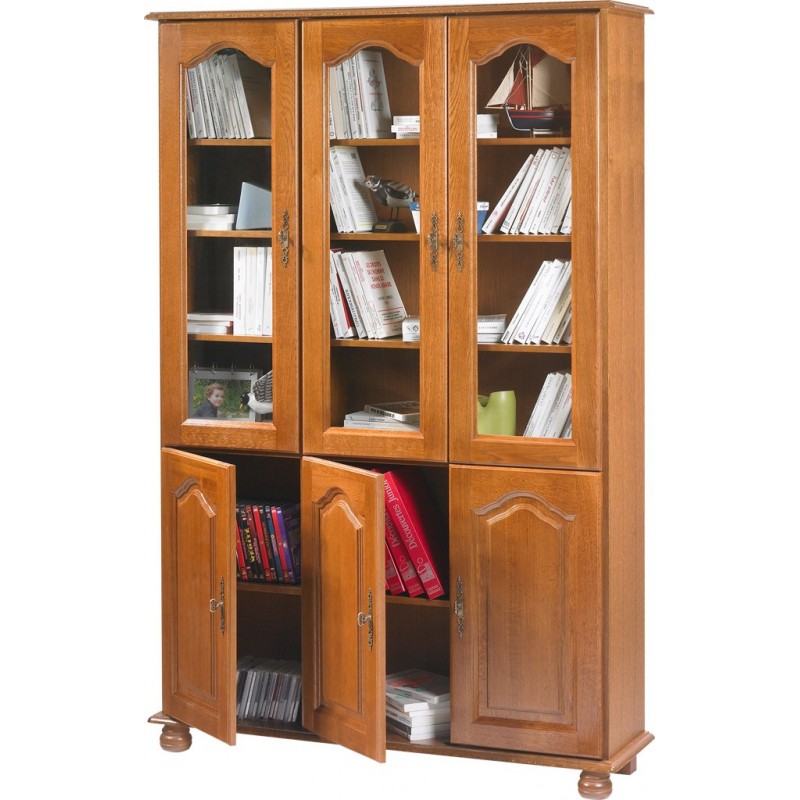 Bibliothèque chêne rustique 3 portes vitrées + 3 portes pleines largeur 120.6 cm