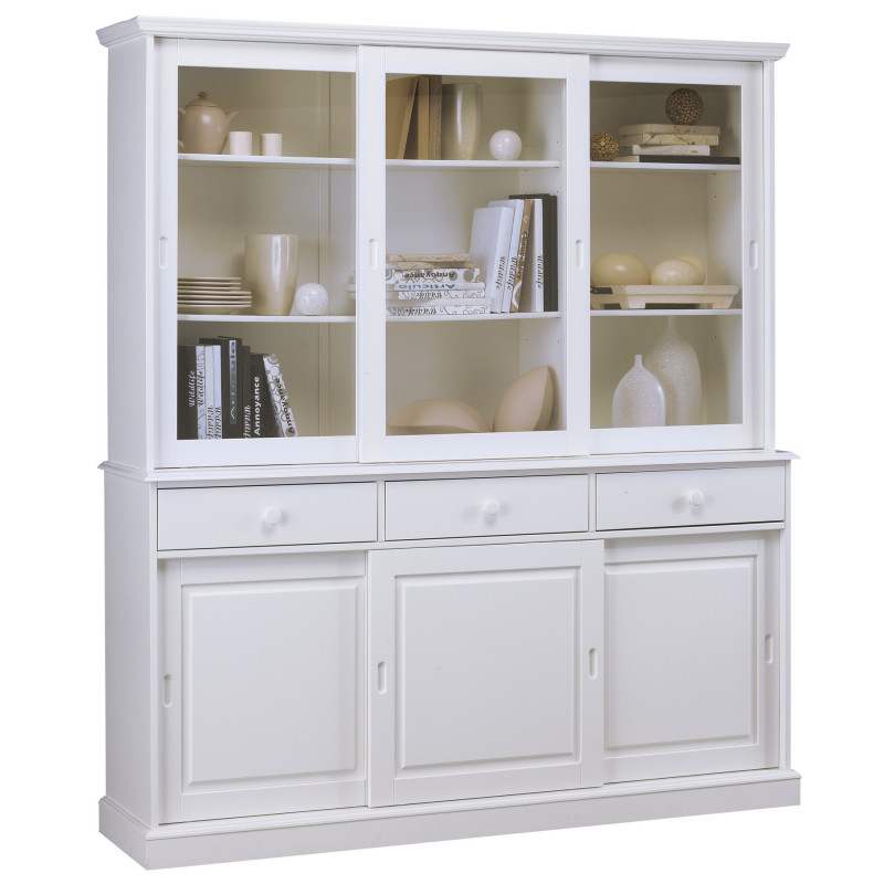 Buffet Vaisselier Blanc, 6 Portes Coulissantes et 3 Tiroirs