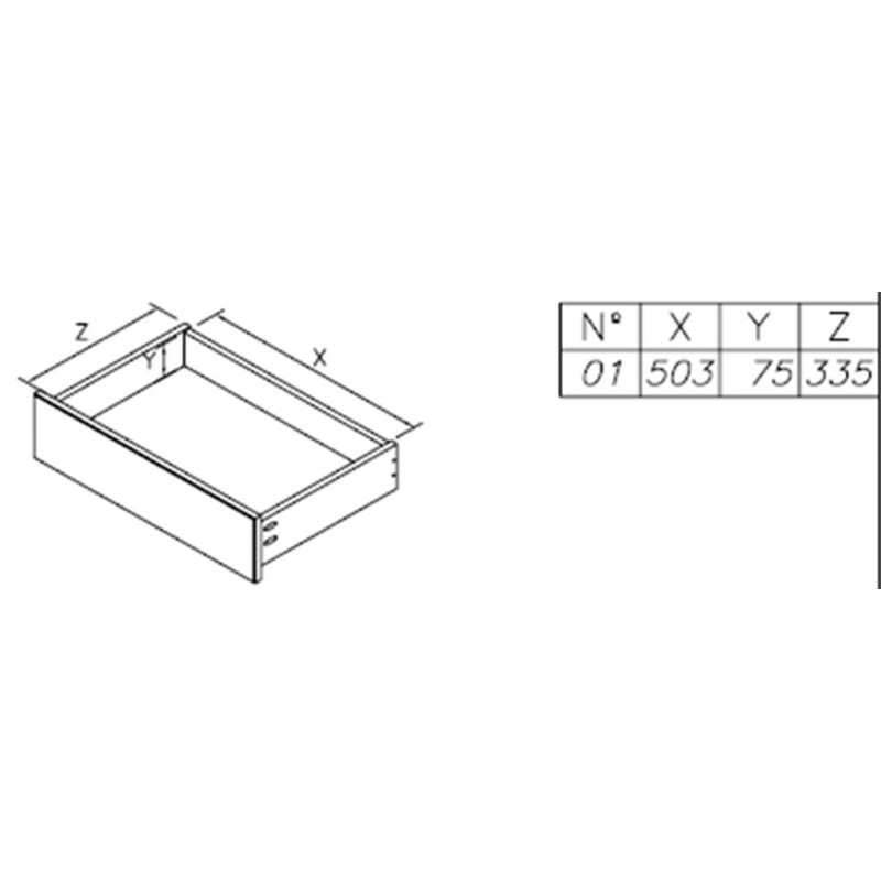 - 3 Tiroirs : Larg. 50.3 cm Haut. 7.5 / 10 cm Prof. 33.5 cm