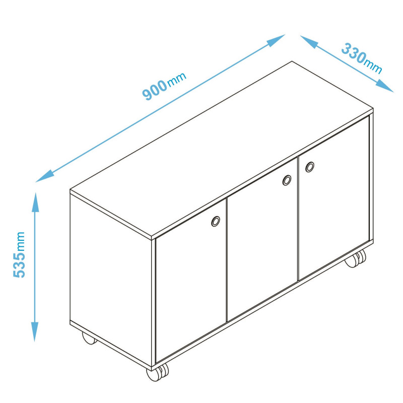 Buffet - Meuble de Rangement Multifonctions. MULTI. 3 Portes 1 Etagère, 3 Niches. Sur Roulettes. Longueur 90 cm Hauteur 53.5 cm Profondeur 33 cm. Livraison sous une semaine offerte.