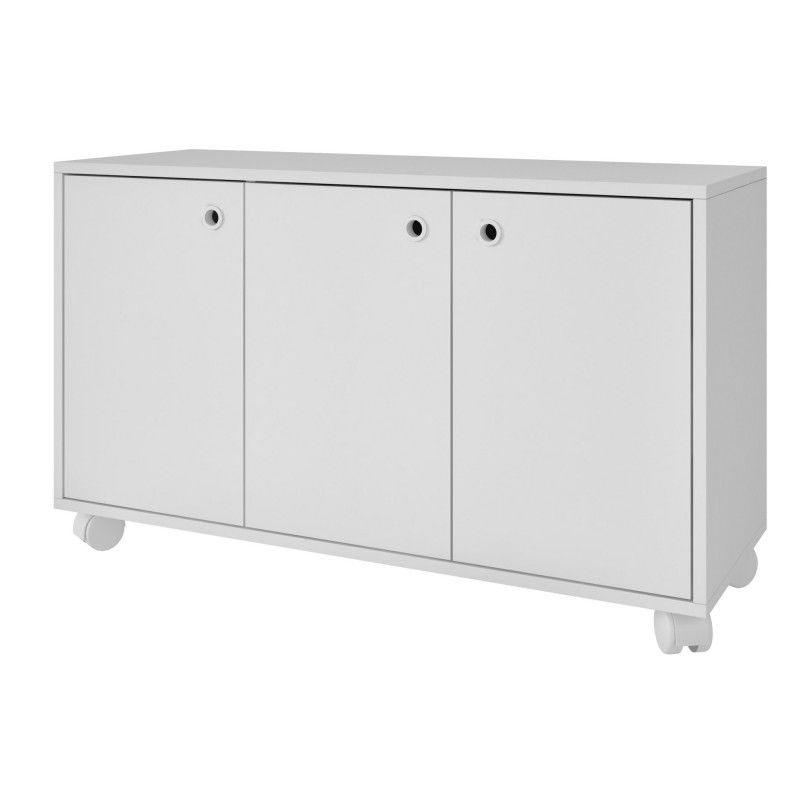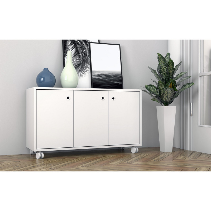 Buffet - Meuble de Rangement Multifonctions 3 Portes sur Roulettes Coloris Blanc