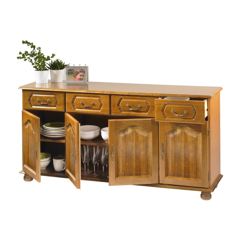Buffet bas Enfilade chêne 4 portes 4 tiroirs 6 Niches Longueur 158.8 cm