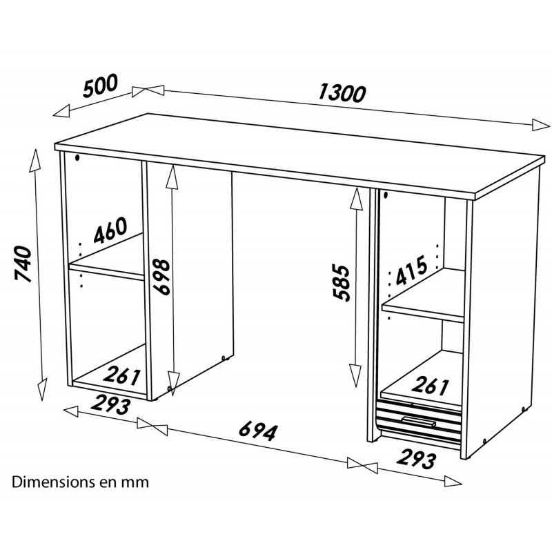 Longueur 130 cm Hauteur 74 cm Profondeur 50 cm