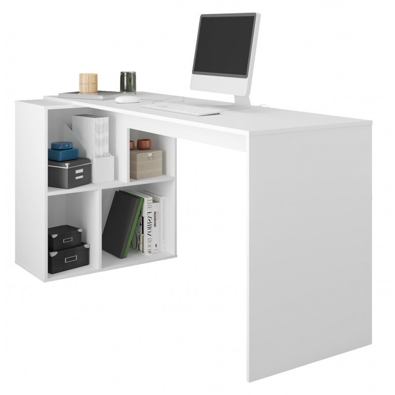 Bureau et Rayonnage Blanc 4 Niches OFFICE
