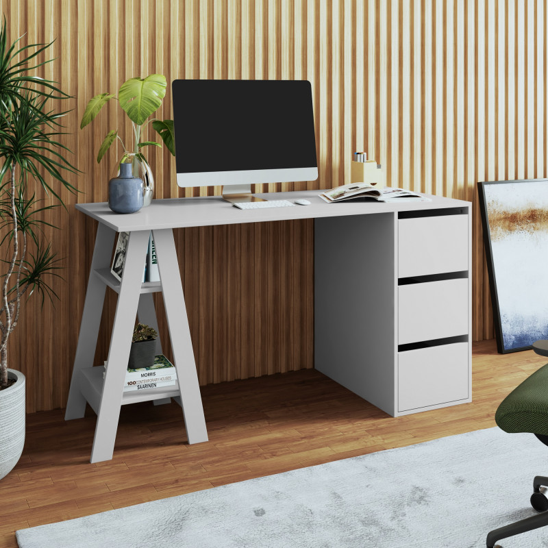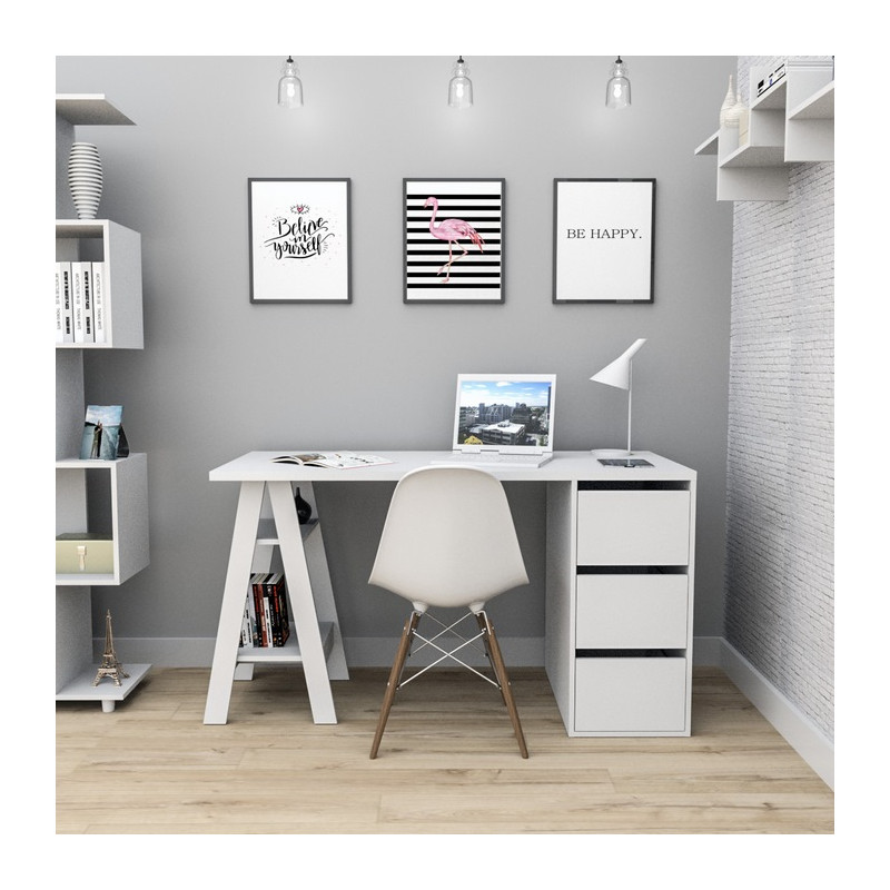 Bureau 1 Tréteau 3 Tiroirs Coloris Blanc.
