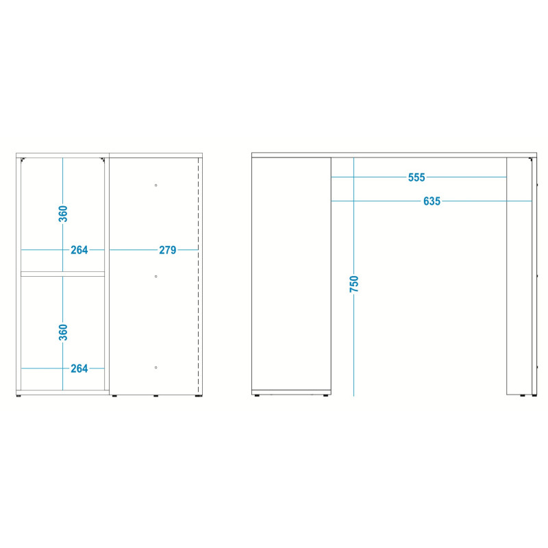 - Bureau, espace utile : Largeur 63.5 x Hauteur 75 x Profondeur 29.4 cm