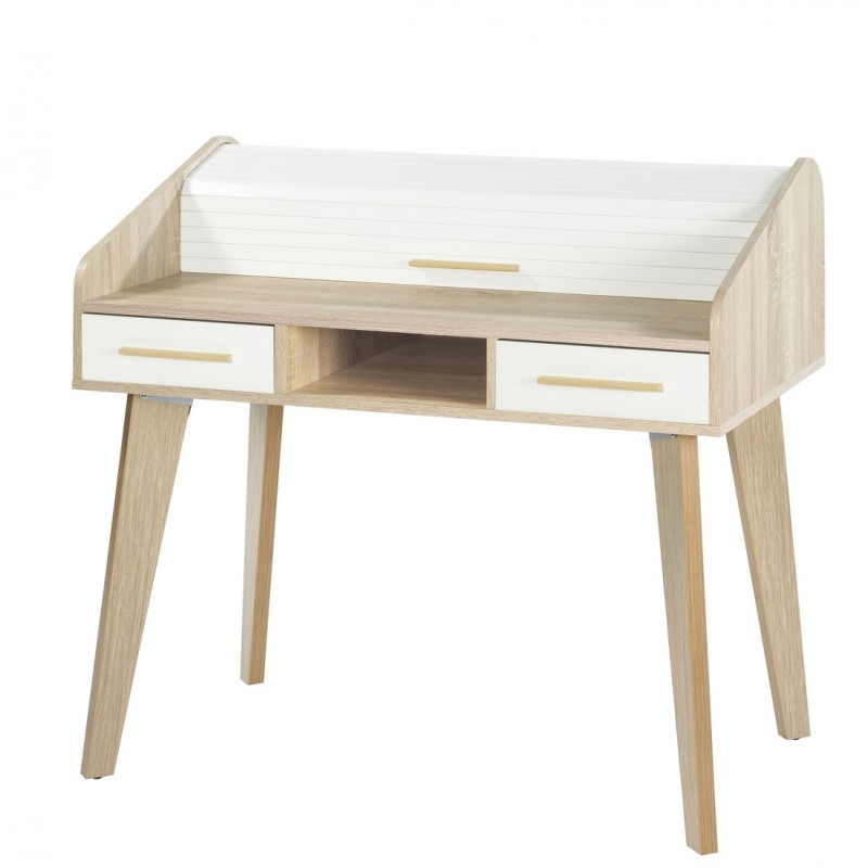 Bureau Pieds chêne, Rideau Blanc avec ou sans tiroirs blancs. Largeur 104 cm Hauteur 95.1 cm Profondeur 60 cm. Livraison gratuite sous une semaine. Vendu avec 0, 1, 2, ou 3 tiroirs.