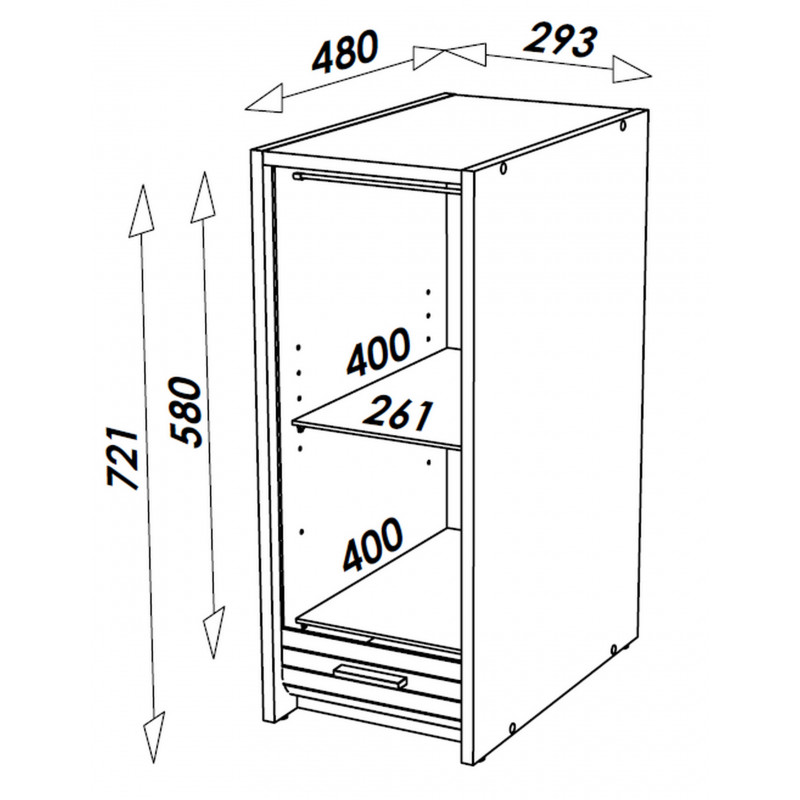 Largeur 29.3 cm Hauteur 72.1 cm Profondeur 48 cm.