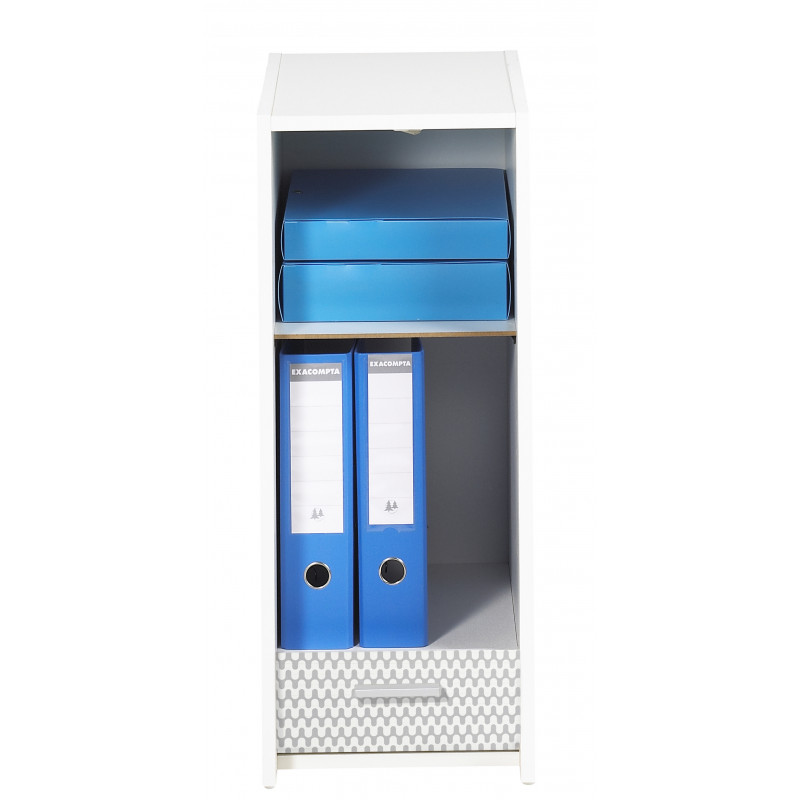 Caisson de rangement de bureau blanc avec rideau imprimé (plusieurs photos disponibles).