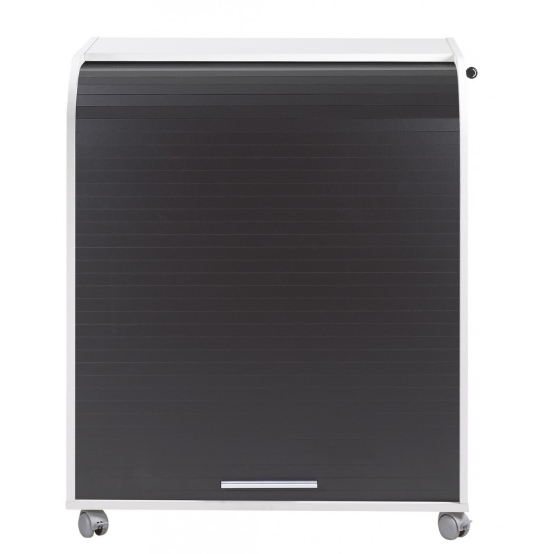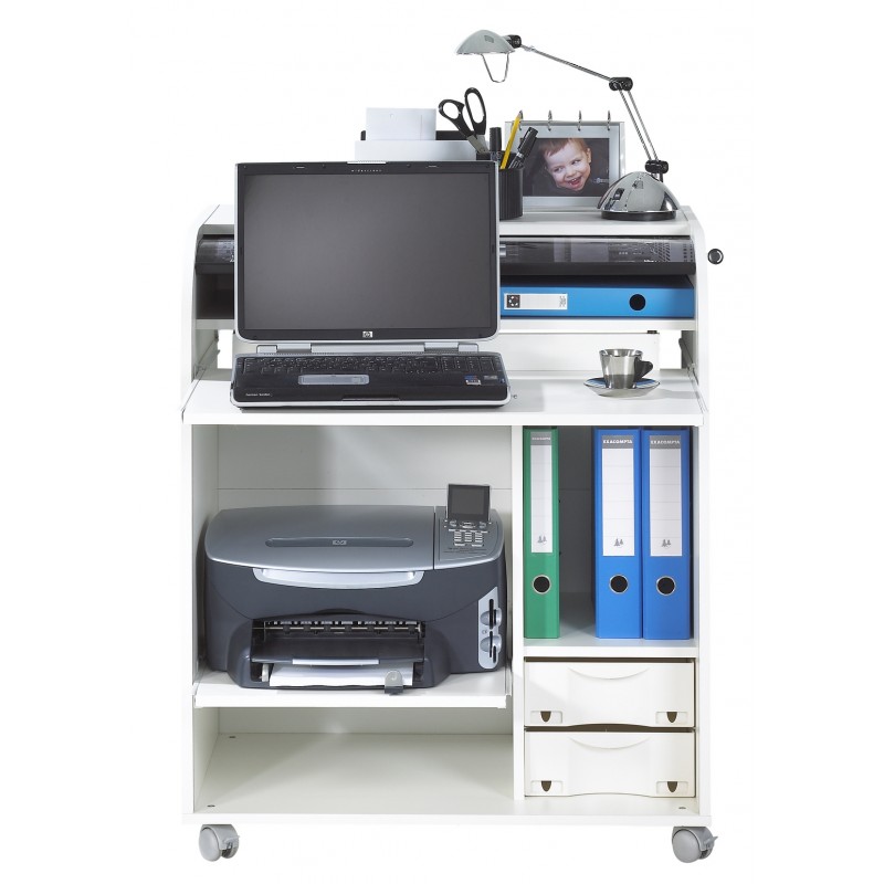 Bureau Informatique Blanc et Noir à Roulettes. Fermeture à clé. Nombreux rangements. Largeur 79.2 cm Hauteur 93.8 cm Profondeur 53.2 cm. Fabriqué en France. Eco-conçu. Livraison sous 7 jours offerte.