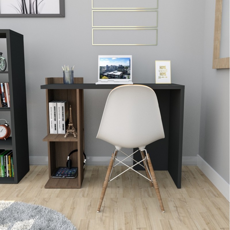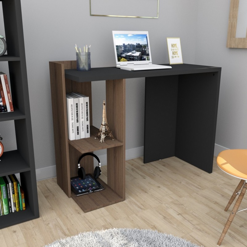 Bureau avec Pied Gauche Caisson 2 Niches 2 Etagères. Coloris Imitation Noyer et Noir. Longueur 101.5 cm Hauteur 75 cm Profondeur 41.5 cm. Livraison sous une semaine offerte.