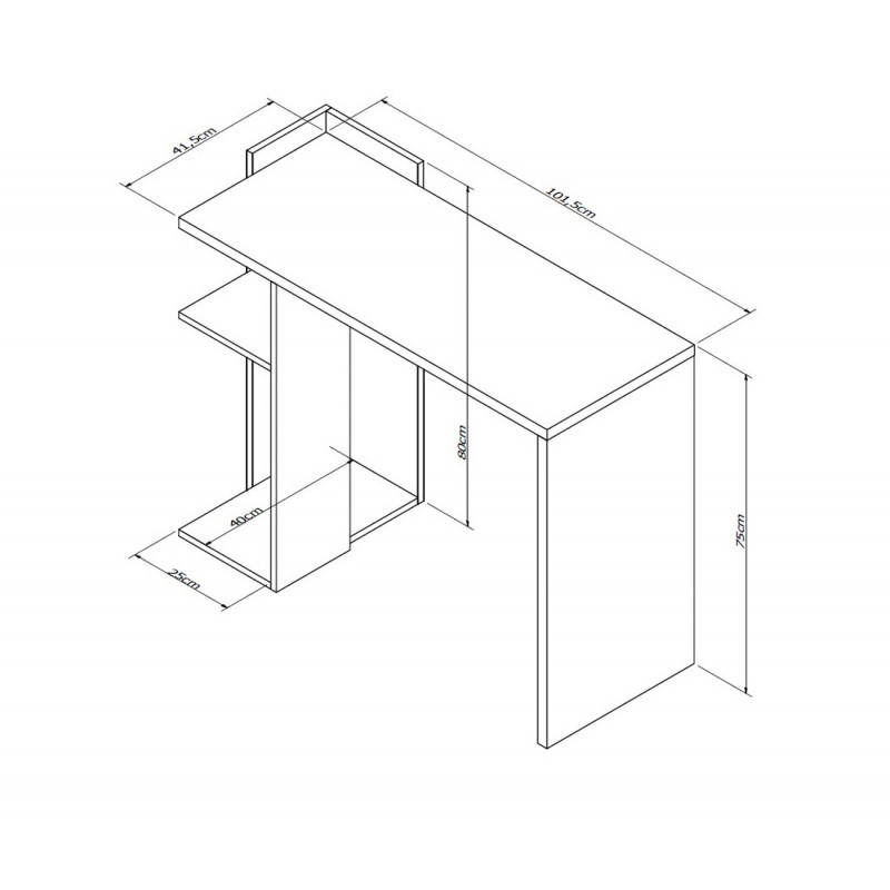 - Plateau de bureau : Longueur 101.5 cm Hauteur 75 cm Profondeur 41.5 cm