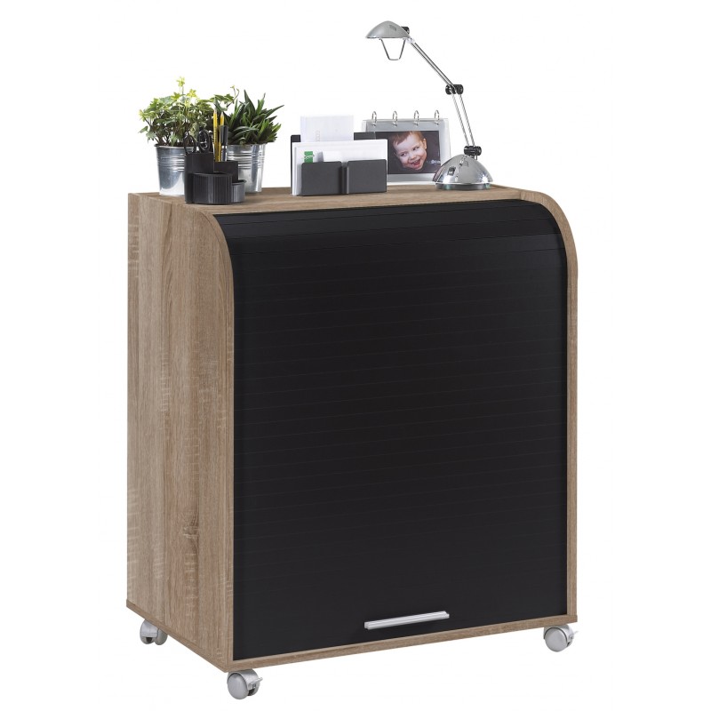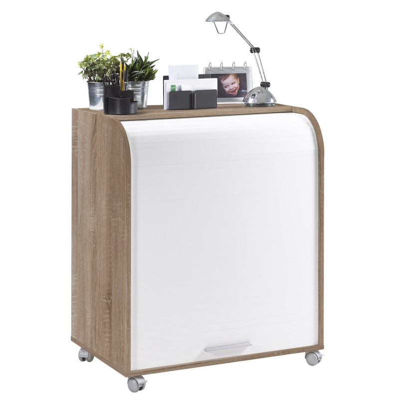 Bureau informatique Coloris Imitation Chêne à roulettes avec Rideau Uni ou imprimé