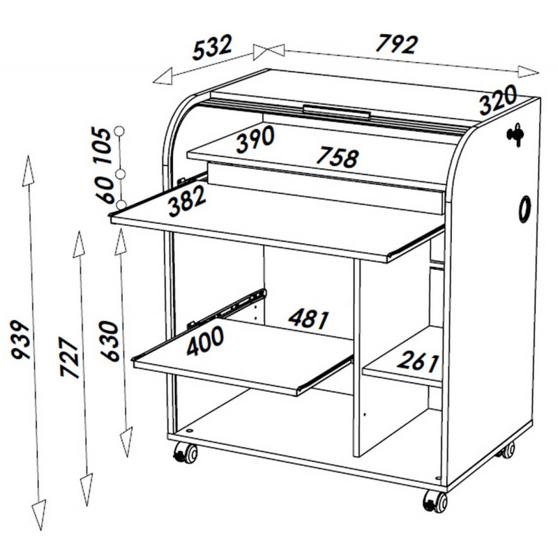Bureau Informatique Coloris Imitation Chêne à Roulettes. Rideau Coloris Uni ou Imprimé. Fermeture à clé. Nombreux rangements. Largeur 79.2 cm Hauteur 93.8 cm Profondeur 53.2 cm. Fabriqué en France. Eco-conçu. Livraison sous une semaine offerte.