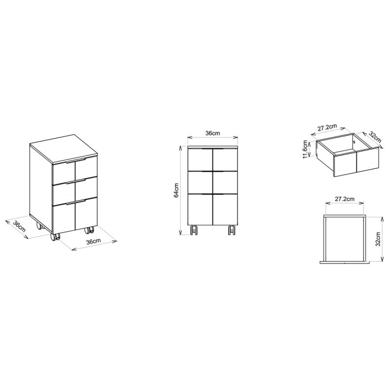 Caisson Roulant 3 Tiroirs Gris Mat CUBIC. Largeur 36 cm Hauteur 64 cm Profondeur 36 cm. 4 Roulettes.