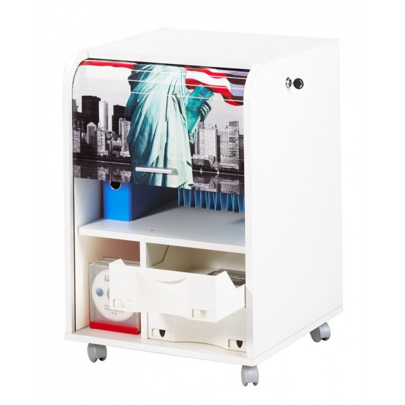 Caisson de Bureau sur Roulettes, Blanc et Rideau imprimé.