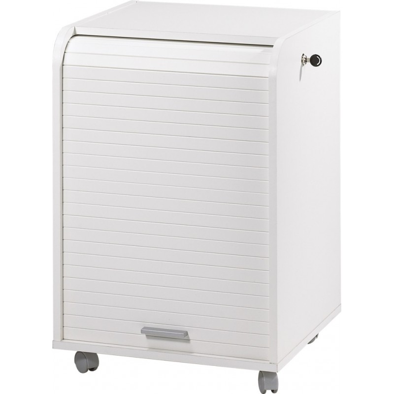 Caisson de Bureau Blanc sur Roulettes. Rideau uni ou imprimé. 2 Tiroirs et 1 Kit pour Dossiers Suspendus (non fournis). Largeur 47.2 cm Hauteur 69.2 cm Profondeur 47 cm. Fermeture à clé. Eco-conçu. Fabriqué en France. Livraison gratuite sous une semaine.