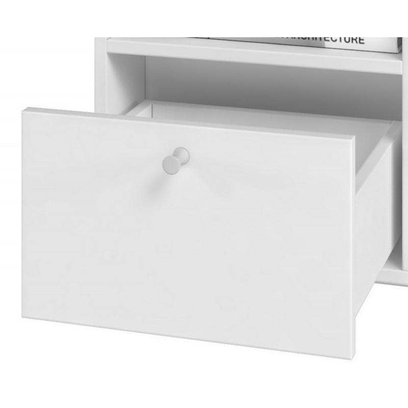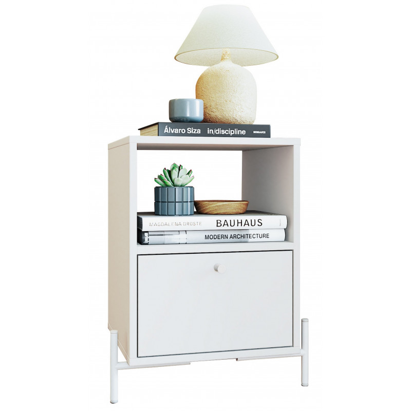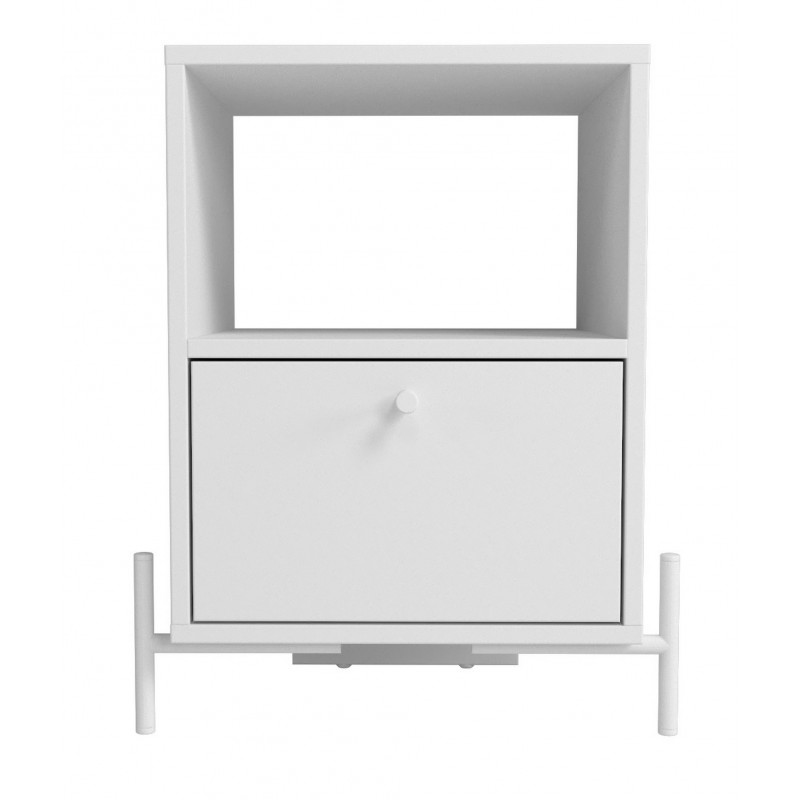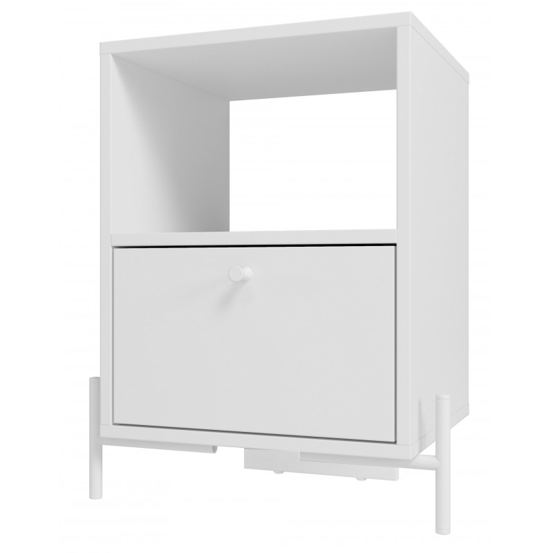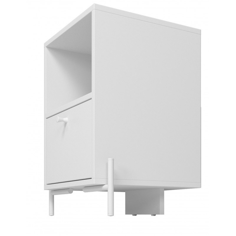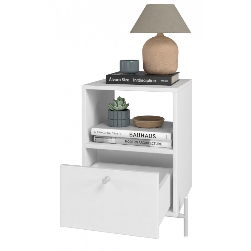Chevet Blanc gamme PEN. Egalement Meuble d'Entrée. 1 Tiroir. 1 Niche. 2 Pieds Métaliques Ronds et Fins. Largeur 45 cm Hauteur 56 cm Profondeur 35 cm. Livraison sous 5 jours offerte.