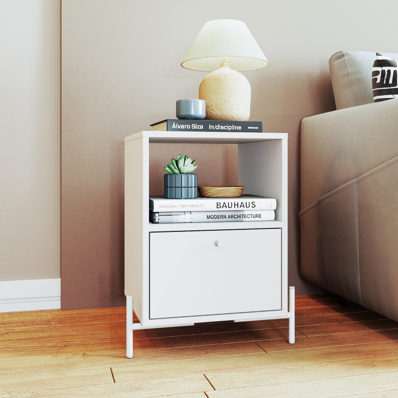 Chevet - Meuble d'entrée 1 Tiroir 1 Niche Blanc Pieds Métal PEN
