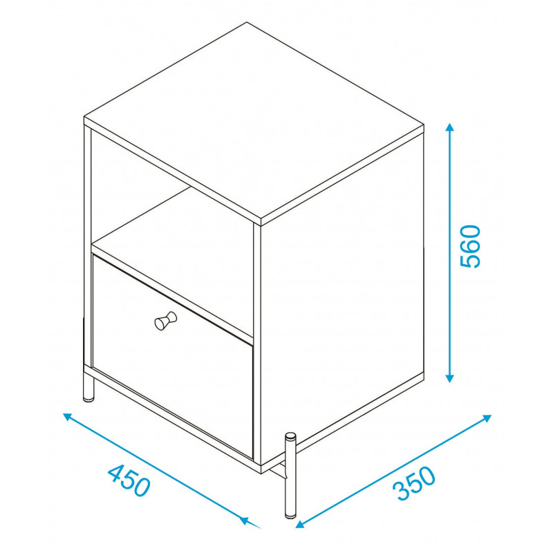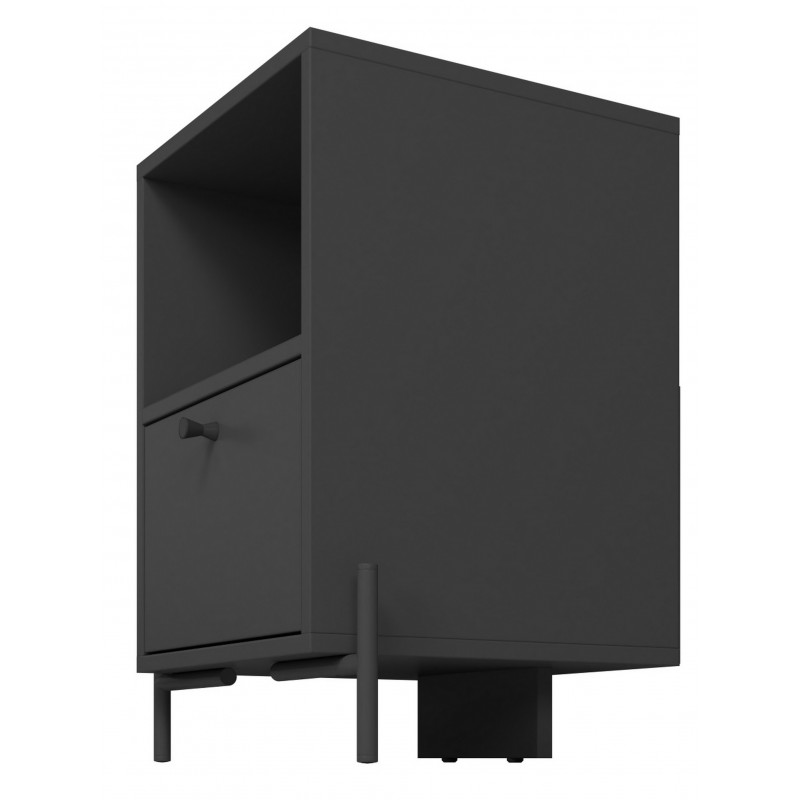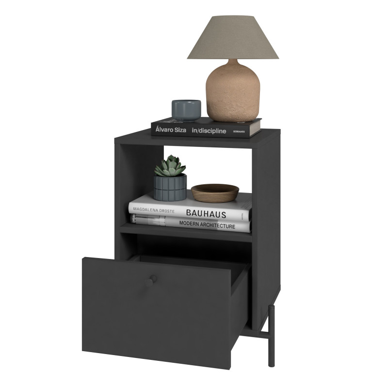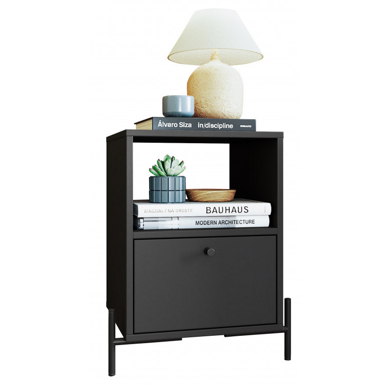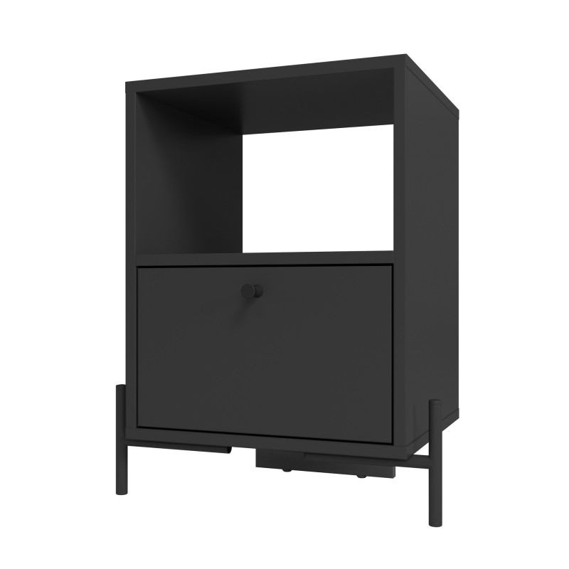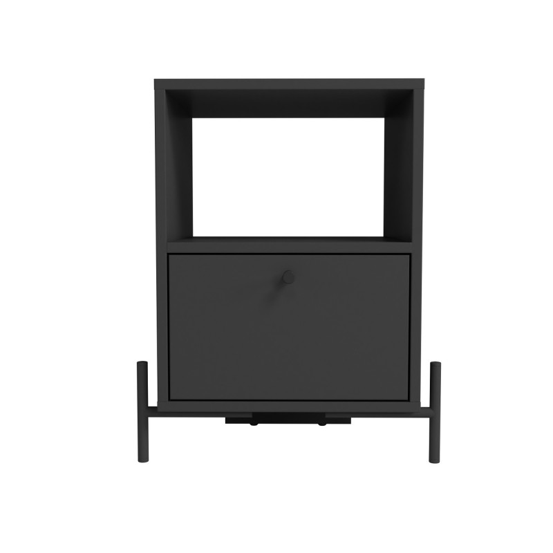 Chevet, Meuble d'Entrée Noir gamme PEN. 1 Tiroir. 1 Niche. 2 Pieds Métaliques Ronds et Fins. Largeur 45 cm Hauteur 56 cm Profondeur 35 cm. Livraison sous 5 jours offerte.