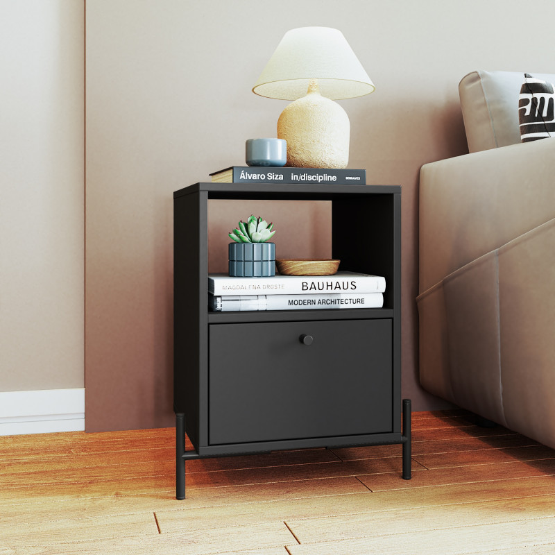 Chevet - Meuble d'entrée 1 Tiroir 1 Niche Noir Pieds Métal PEN