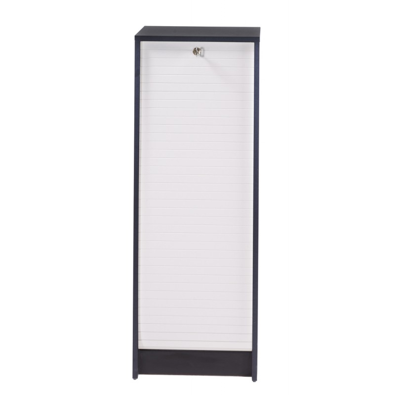 Classeur à Rideau Noir Bicolore Hauteur 104 cm. 5 Etagères. Largeur 37.8 cm Hauteur 103.8 cm Profondeur 38.4 cm. Fermeture à clé. Fabriqué en France. Eco-conçu. Livraison sous 7 jours offerte.