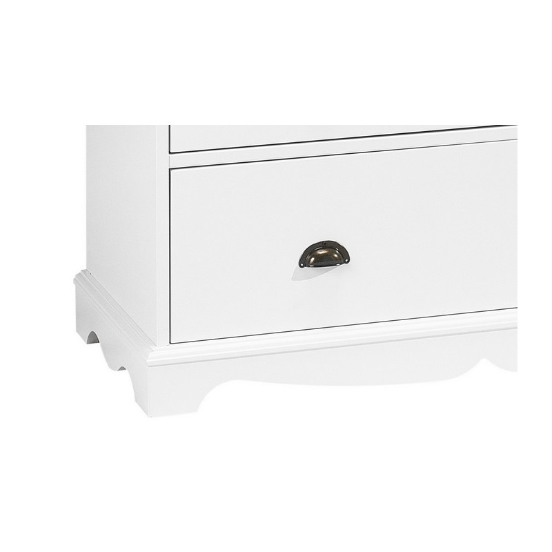 Commode Blanche 5 Tiroirs de Style Charme Anglais. 3 Dimensions de tiroirs différentes. 2 Types de poignées (bois ou métal) selon votre choix. Longueur 96.2 cm Hauteur 97.4 cm Profondeur 42.5 cm. Livraison gratuite sous une semaine.