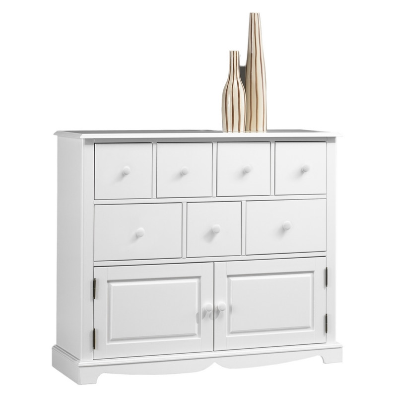 Buffet Blanc, Commode de Style Anglais 2 portes + 7 tiroirs