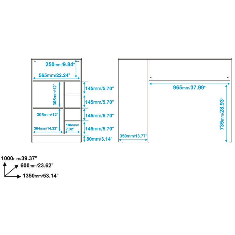 - 4 Niches latérales : Largeur 18.6 cm x Hauteur 14.5 cm x Profondeur 35 cm chacune