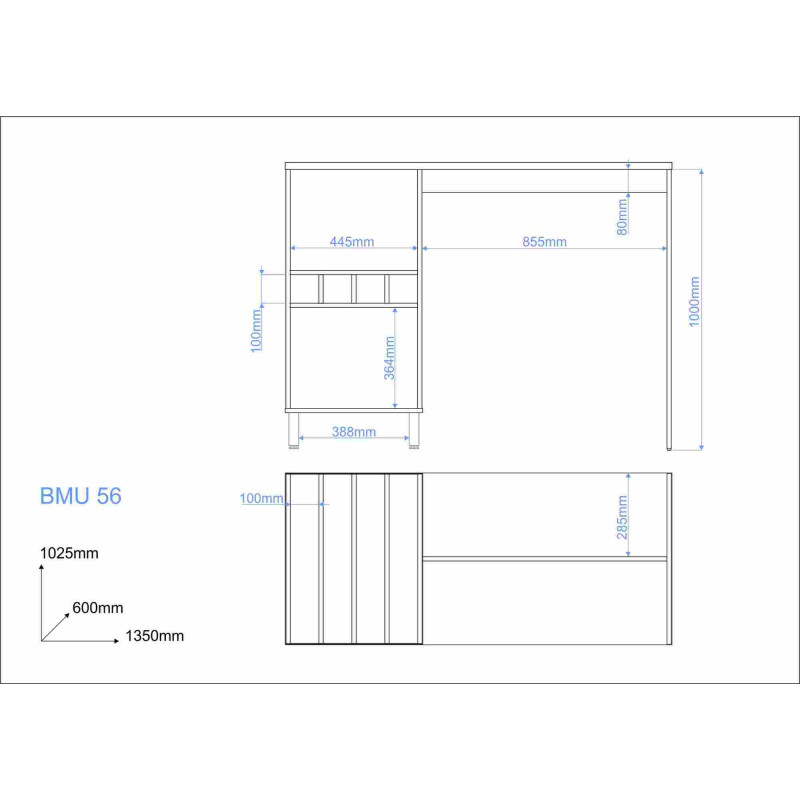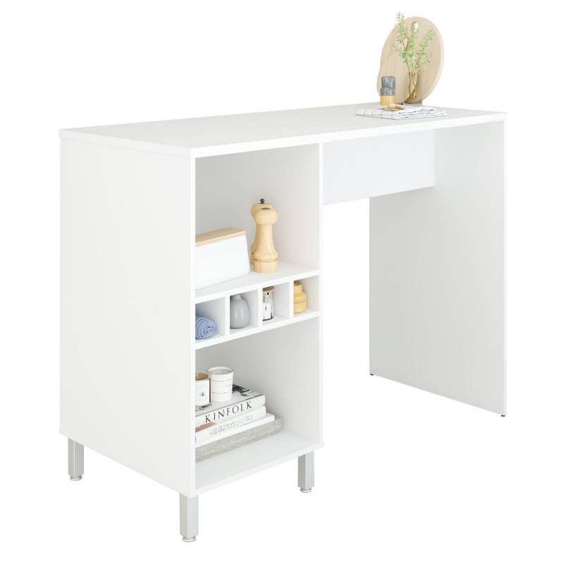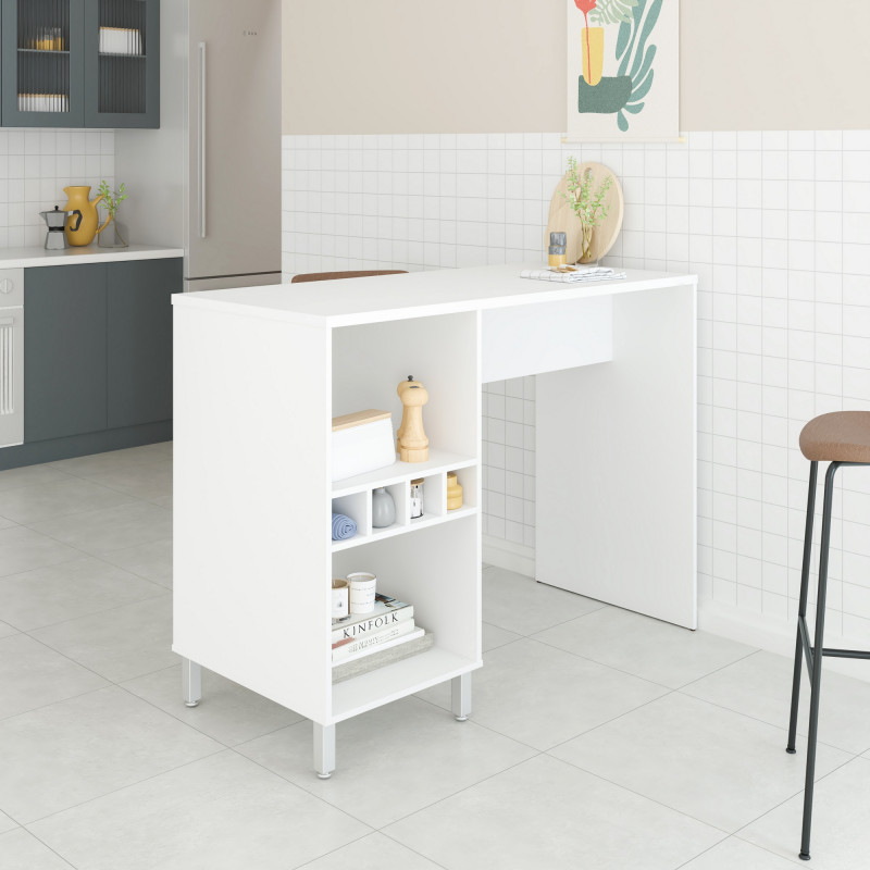 Comptoir de Cuisine - Table à Manger pour 2 Personnes. 6 Niches. Longueur 135 cm Hauteur 102.5 cm Profondeur 60 cm. Peut être mis contre de le mur dans le sens de la largeur ou de la longueur. Coloris Blanc. Livraison sous une semaine offerte.