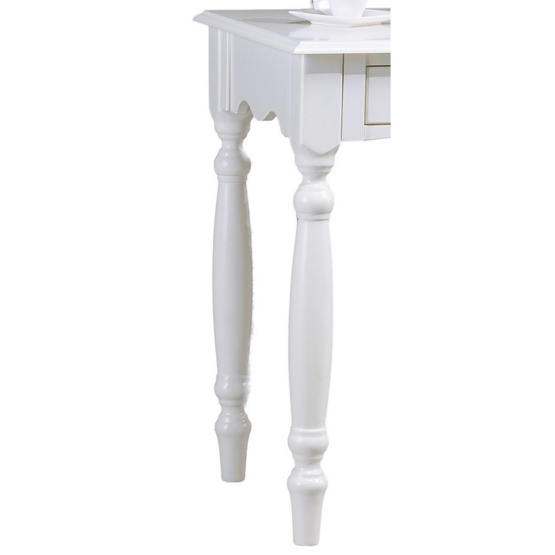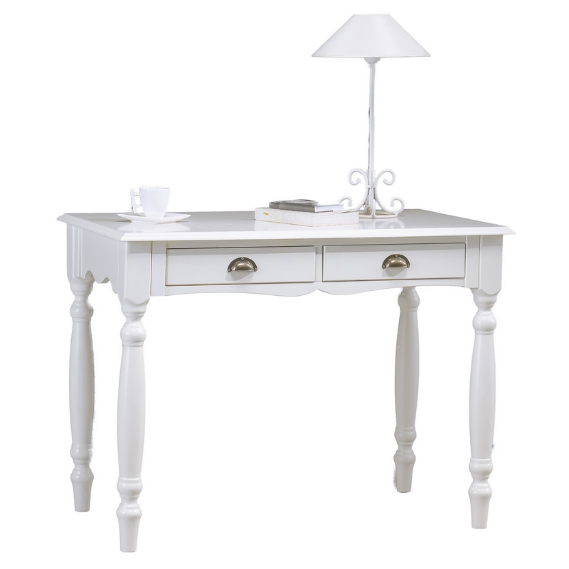 Table à écrire Blanche 4 Pieds Tournés 2 tiroirs.