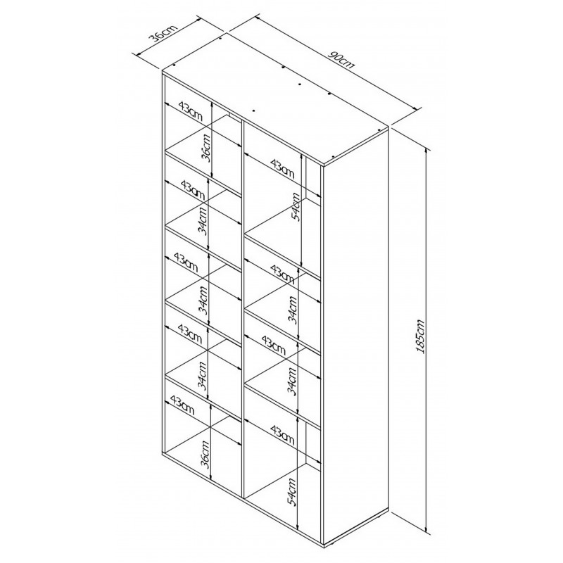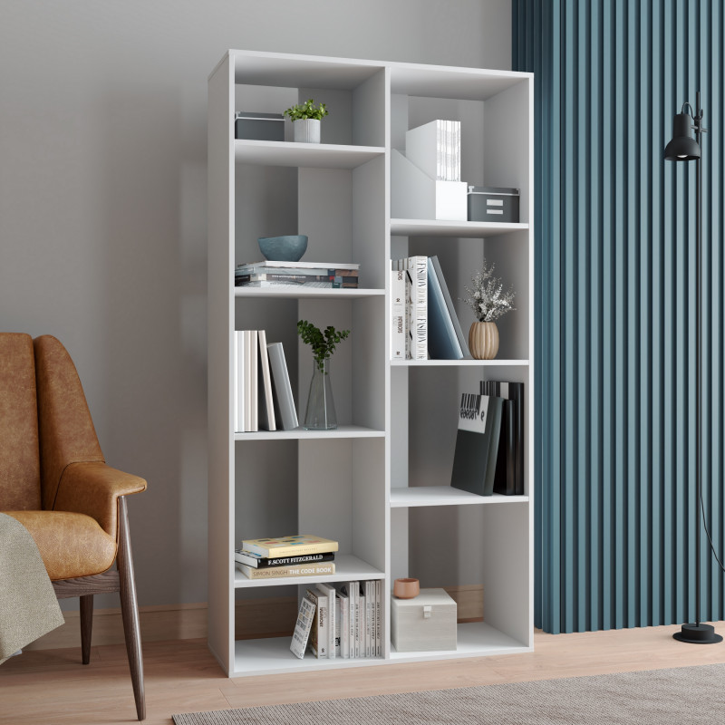 Grand Rayonnage - Bibus LINEA. Hauteur 185 cm. 9 Niches / 7 Etagères. Coloris Blanc. Largeur 90 cm Hauteur 185 cm Profondeur 36 cm. Livraison sous une semaine offerte.