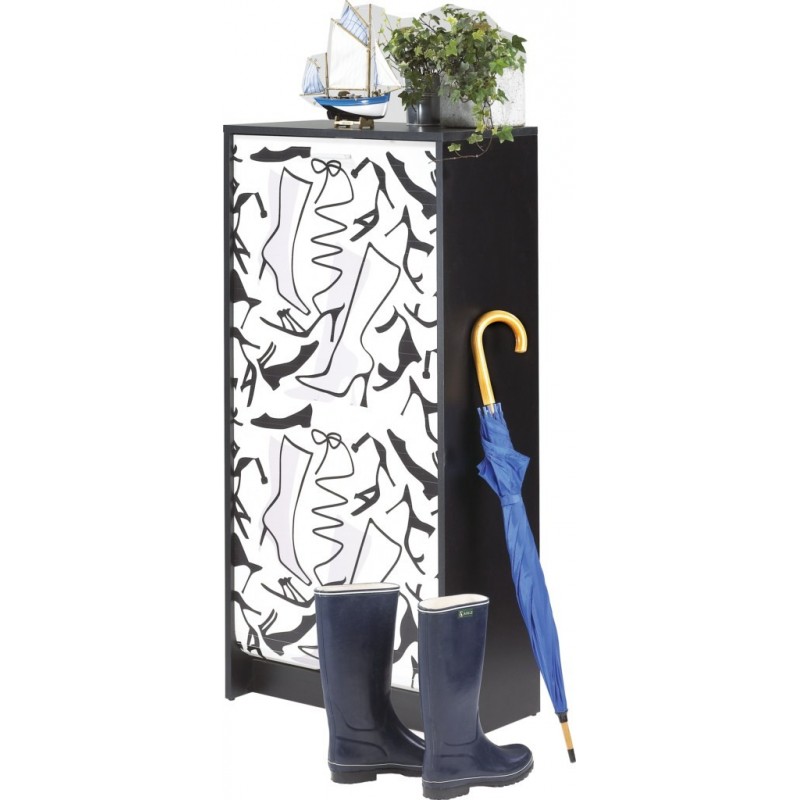 Meuble à Chaussures Noir avec Rideau Noir ou Imprimé
