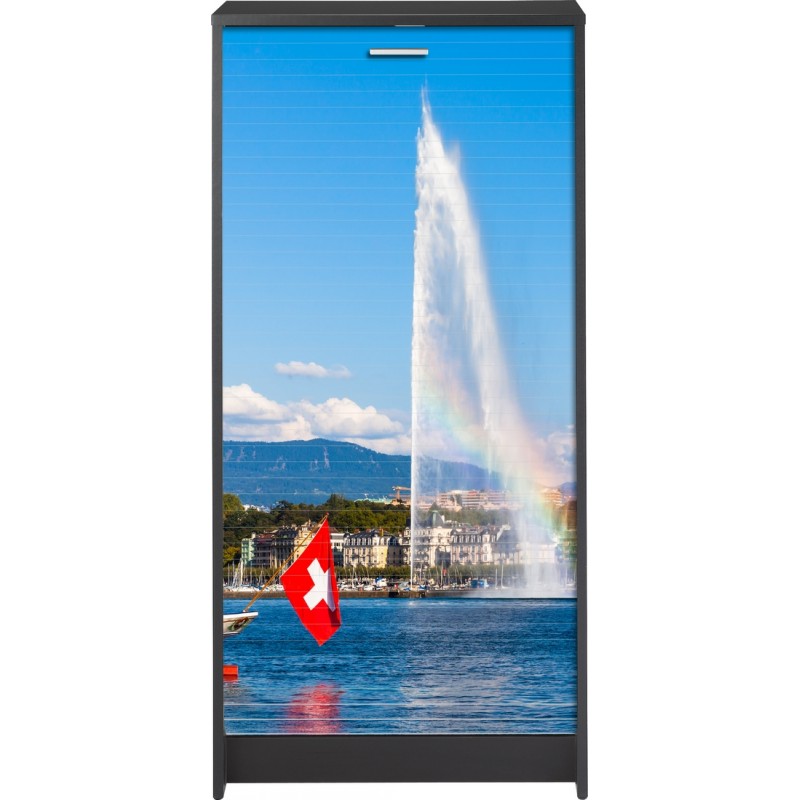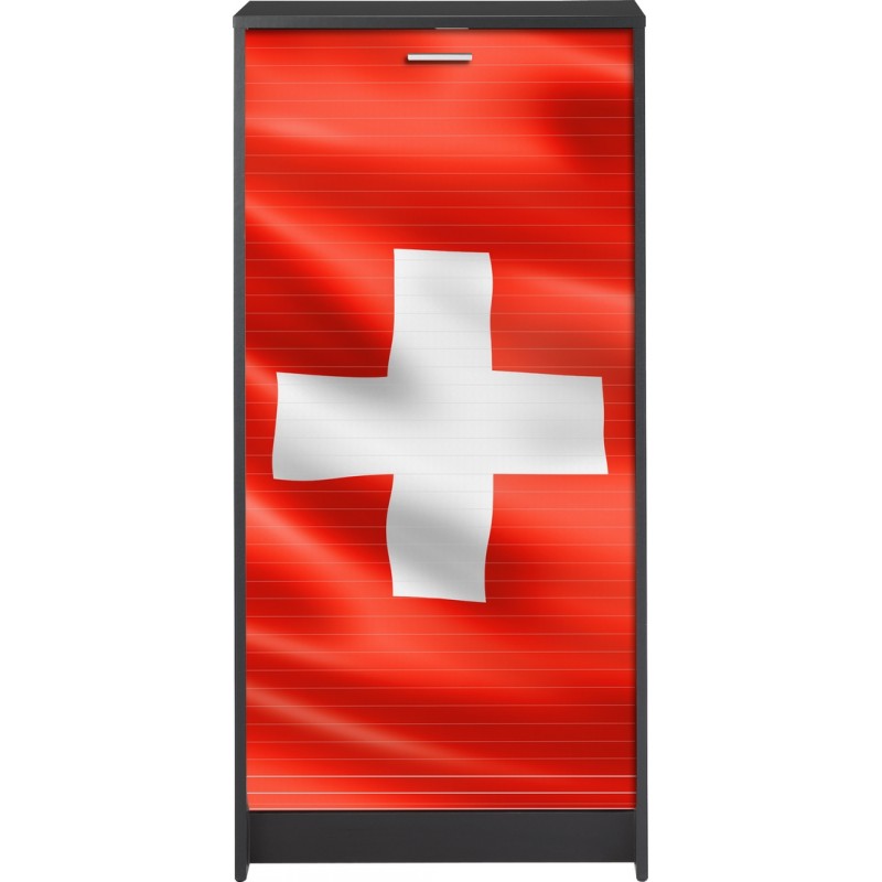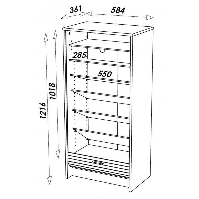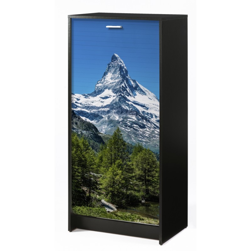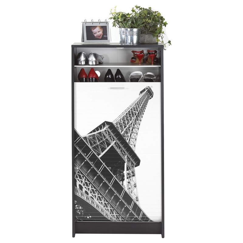 Meuble à Chaussures Noir. 21 paires. Largeur 58.4 cm x Hauteur 121.6 cm x Profondeur 36.1 cm. 7 Tablettes dont 6 Inclinables. Rideau Imprimé ou Noir. Meuble Gain de place. Fabriqué en France. Eco-conçu. Livraison sous 7 jours offerte.