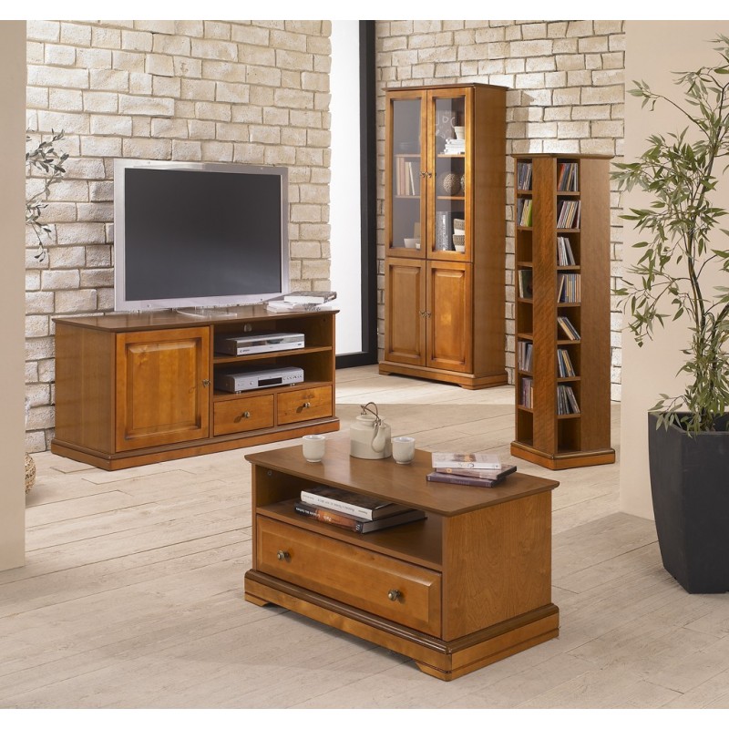 Tour range DVD CD Pivotante sur Roulettes hauteur 134.5 cm plaquée merisier.
