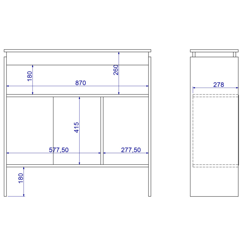 - Niche Droite Fermée (1 porte) : Largeur 27.8 cm x Hauteur 41.5 cm x Profondeur 27.8 cm