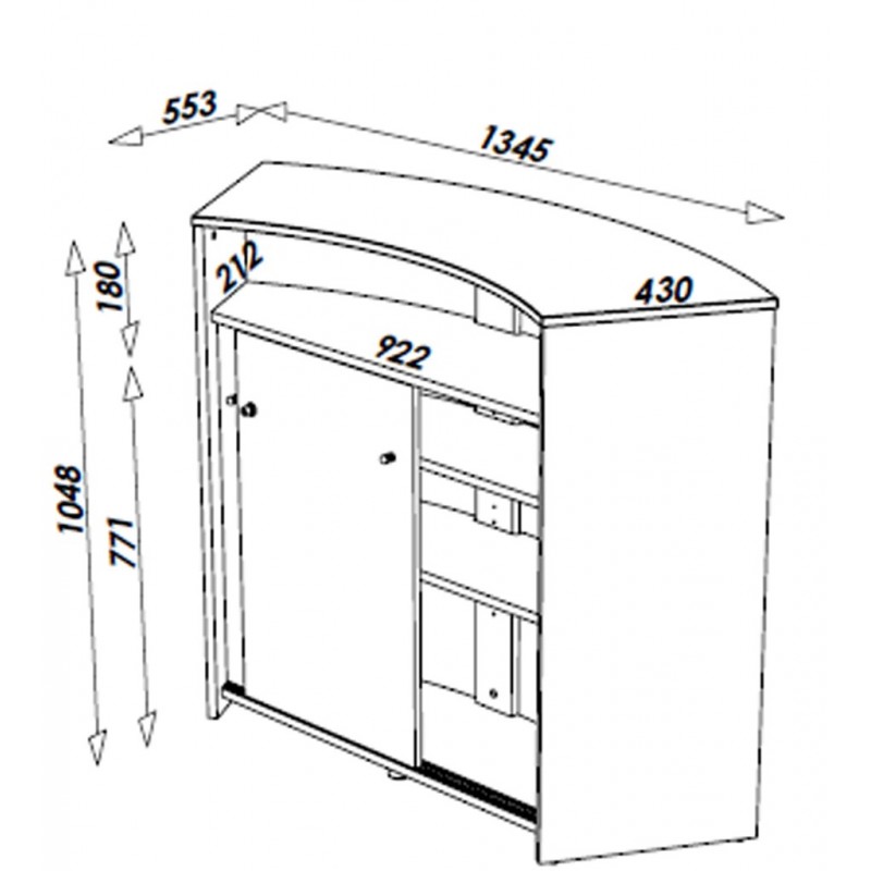 Meuble Bar, Meuble Comptoir d'Acceuil 2 Portes coulissantes Noir. Fermeture à clé. Façade unie ou imprimée. Largeur 134.5 cm Hauteur 104.8 cm Profondeur 55.3 cm. 3 Tablettes. 1 Repose-Pieds Métal. Fabriqué en France. Livraison sous 7 jours offerte.