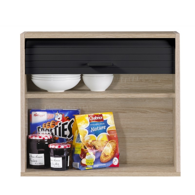 Meuble de Cuisine coloris Chêne et Noir à poser sur le plan de travail ou à suspendre
