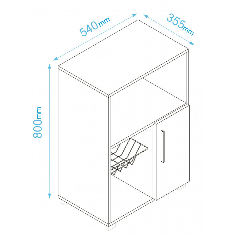 Desserte de cuisine sur Roulettes LOW. Meuble Micro-onde. 1 Porte 1 Panier Métal. 3 Niches dont espace Micro-Onde. Largeur 54 cm Hauteur 80 cm Profondeur 35.5 cm. Livraison sous une semaine offerte.