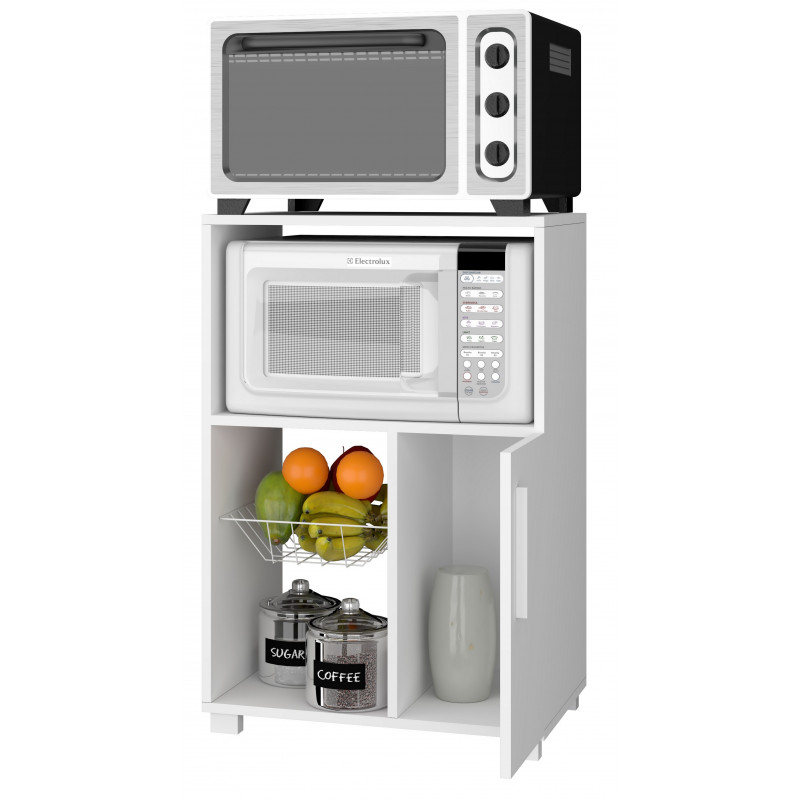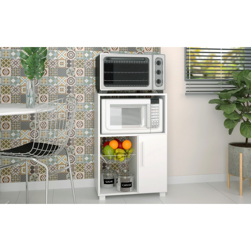 Desserte de cuisine sur Roulettes Meuble Micro-Onde 1 Porte 1 Panier Métal 3 Niches LOW