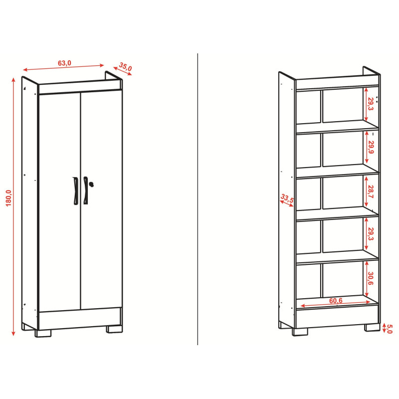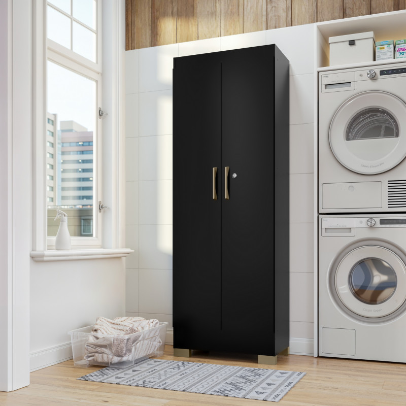 Armoire Multifonctions : Bureau, Buanderie, Chambre, Garage,,... 2 Portes. 5 Niches. 4 Etagères. Coloris Noir. Longueur 63 cm Hauteur 180 cm Profondeur 35 cm. Charnières en métal. 4 Pieds. Modèle LUNA. Livraison gratuite sous une semaine.