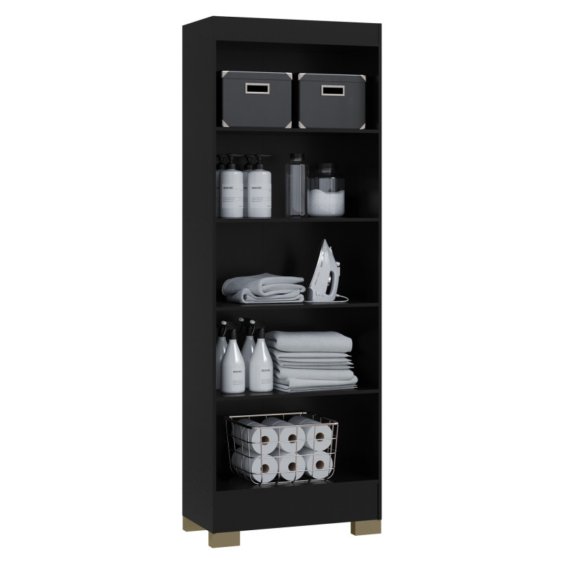Armoire Multifonctions 2 portes 5 Niches Noire L 63 H 180 P 35 cm LUNA