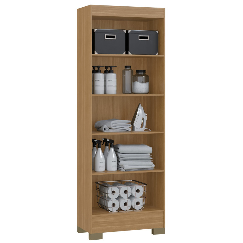 Armoire Multifonctions 2 portes 5 Niches Imitation Chêne L 63 H 180 P 35 cm LUNA