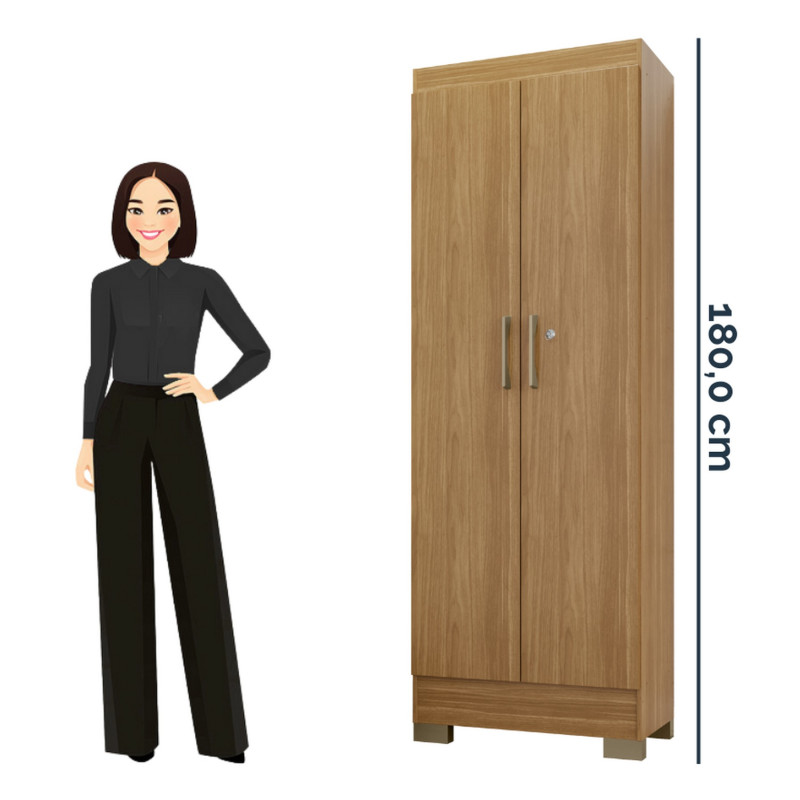 Armoire Multifonctions : Bureau, Buanderie, Chambre, Garage,,... 2 Portes. 5 Niches. 4 Etagères. Coloris Imitation Chêne. Longueur 63 cm Hauteur 180 cm Profondeur 35 cm. Charnières en métal. 4 Pieds. Modèle LUNA. Livraison gratuite sous une semaine.