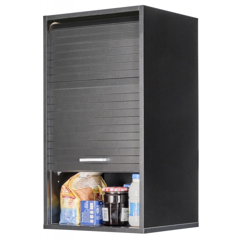 Meuble Elément Haut de Cuisine. Coloris Noir. Largeur 40 cm Hauteur 72 cm Profondeur 35 cm. 2 Tablettes. Fermeture par 1 Rideau. A suspendre ou à poser. Meuble éco-conçu. Fabriqué en France. Livraison sous 7 jours offerte.